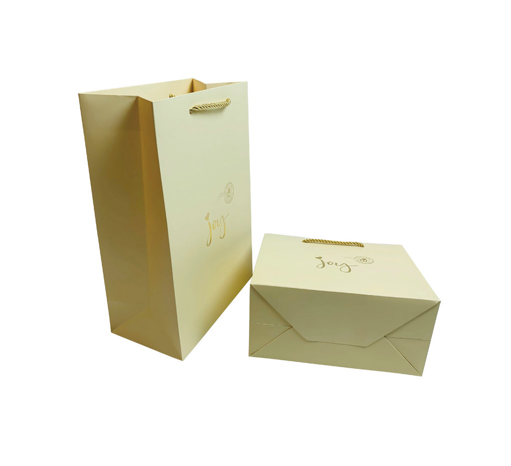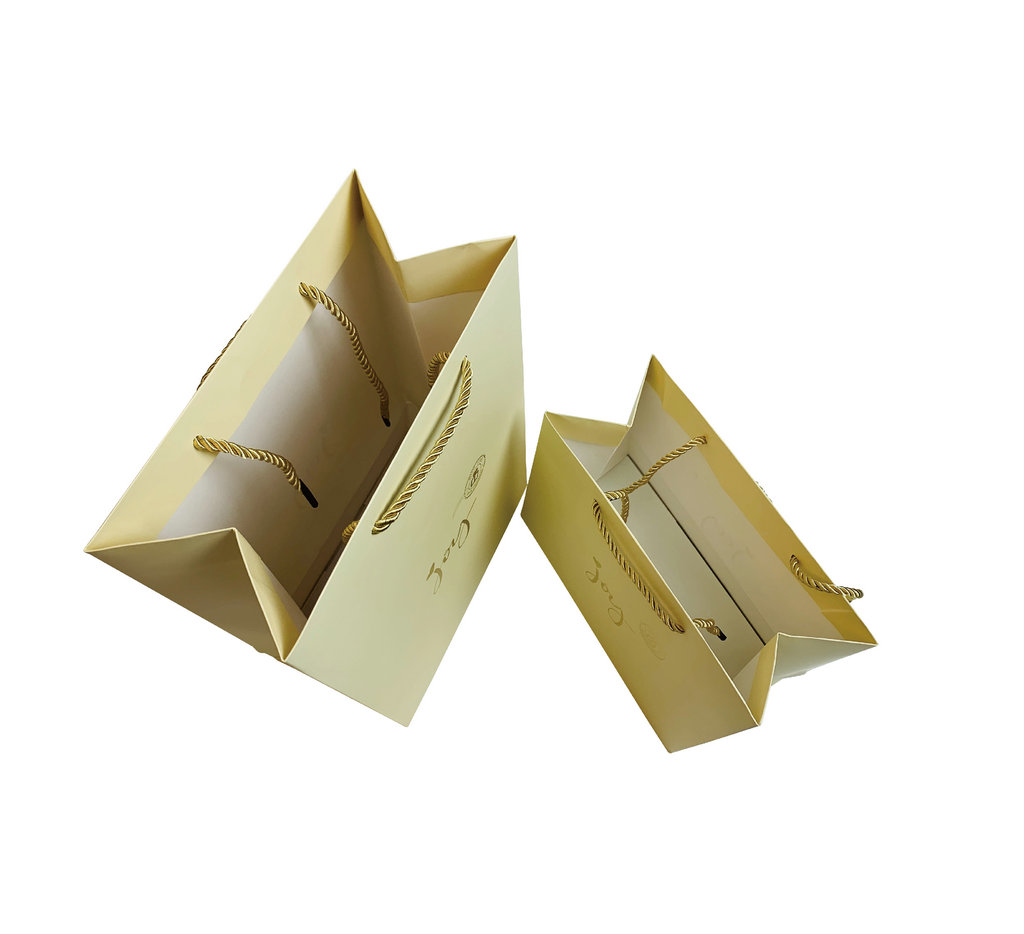 YC-020095 白卡纸专色印刷烫金三股金绳手提袋